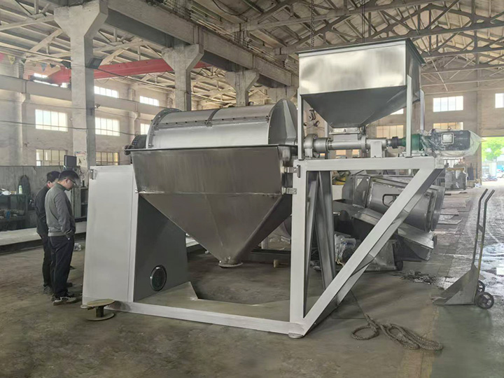 3、采用桶體自轉帶動物料排出,設備外加密閉式罩殼,無灰塵外揚。