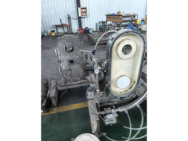 該機(jī)采用螺旋輸送器或負(fù)壓自動吸料,物料進(jìn)入粉碎腔體內(nèi)部。